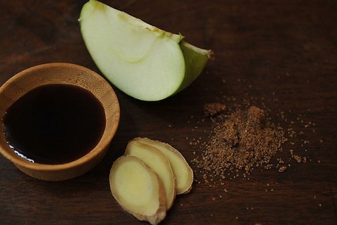 For caramel sauce, heat sugars, water, and reserved cider mix from apples in a skillet. Boil for 5 minutes, whisking (don't let it burn). Remove from heat and add butter, vinegar, and soy sauce. Transfer to sauce pan and simmer over low heat until ready to serve.